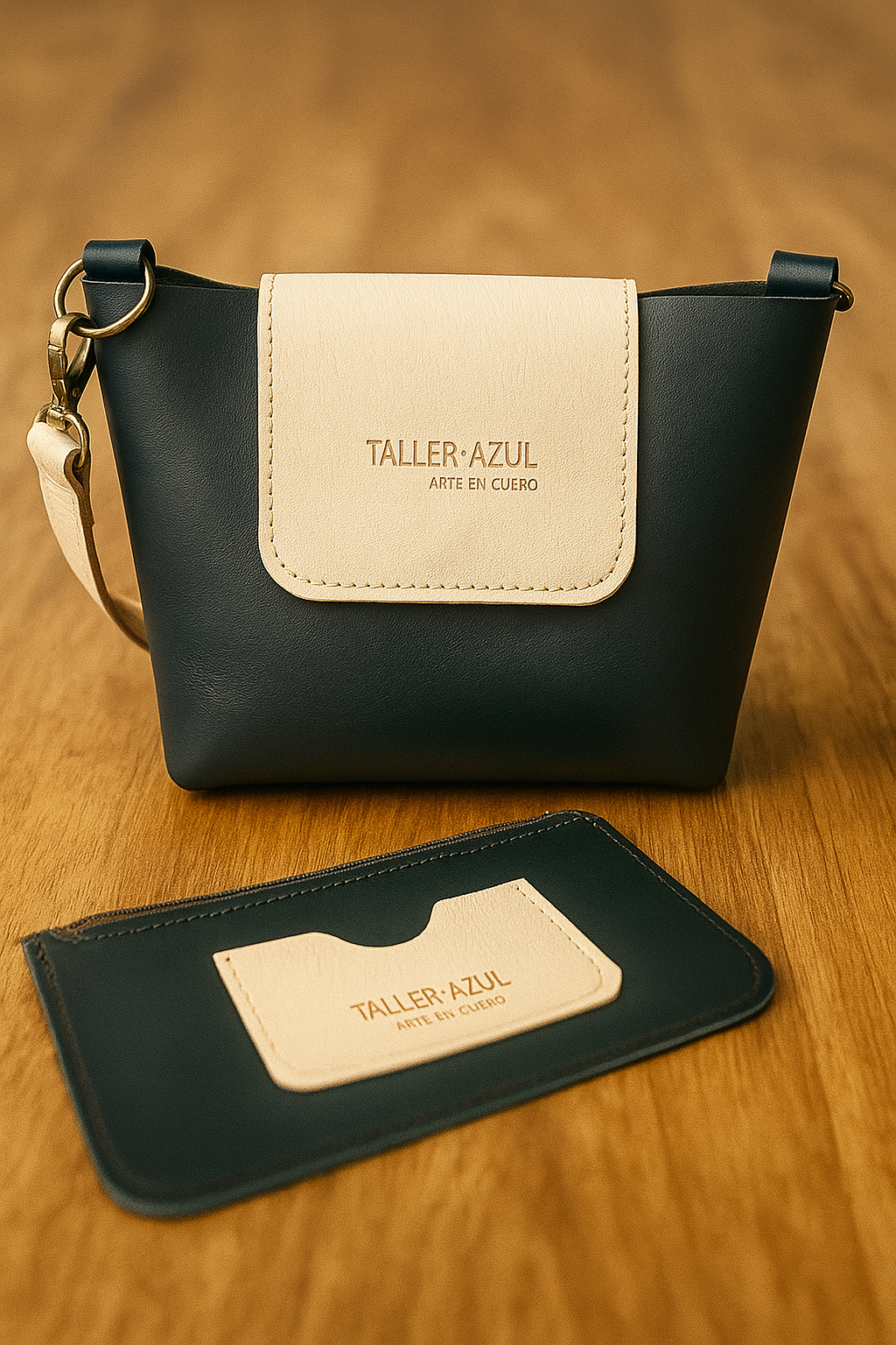Detalles hechos a mano: Cada costura, cada reborde y cada relieve del logo “TALLER AZUL” con la leyenda “arte en cuero” son fruto de un proceso manual cuidadoso, que respeta técnicas ancestrales.