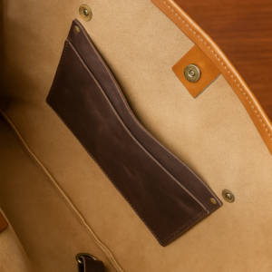 Cartera tote de cuero artesanal, hecha a mano en cuero natural premium. Medidas 22×46×9 cm. Incluye bolsillo interior para documentos importantes y un accesorio porta llaves. Correas en cuero natural con herrajes de bronce envejecido. Diseño exclusivo de Taller Azul, inspirado en la colección “Sueños de Otoño”.
